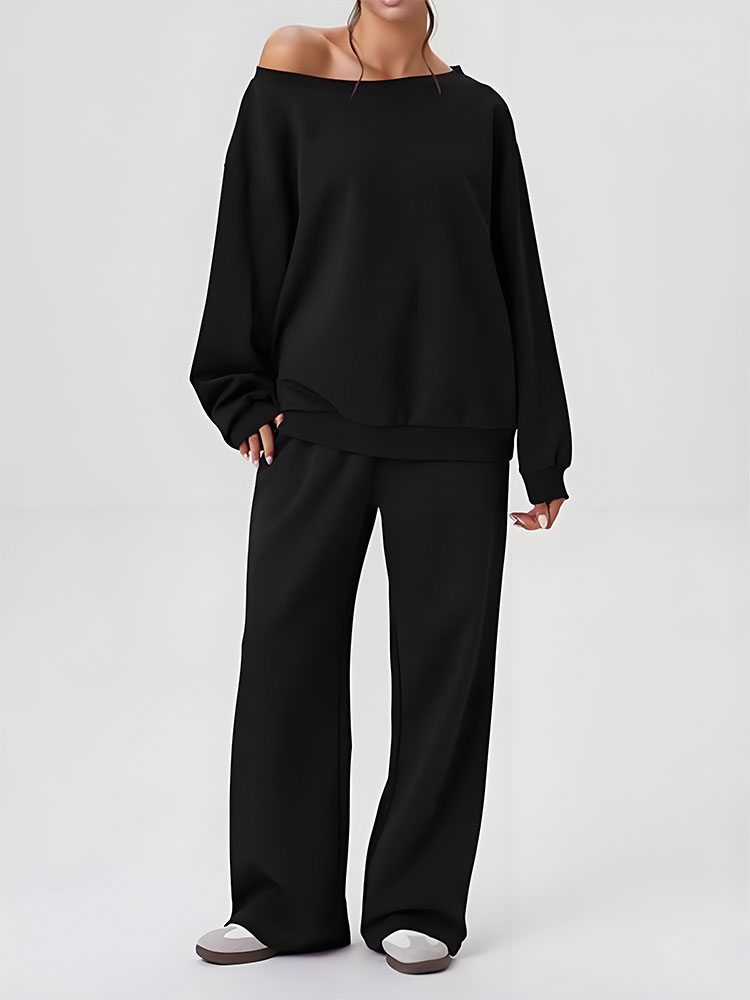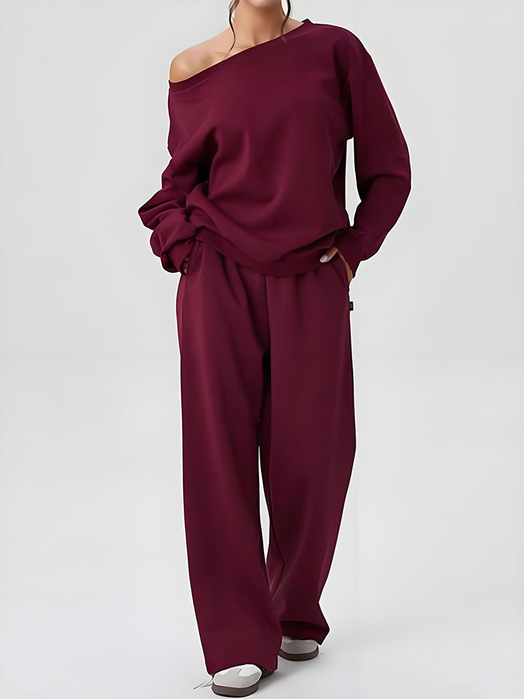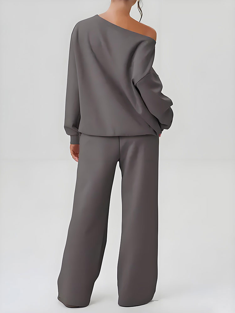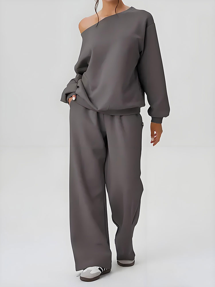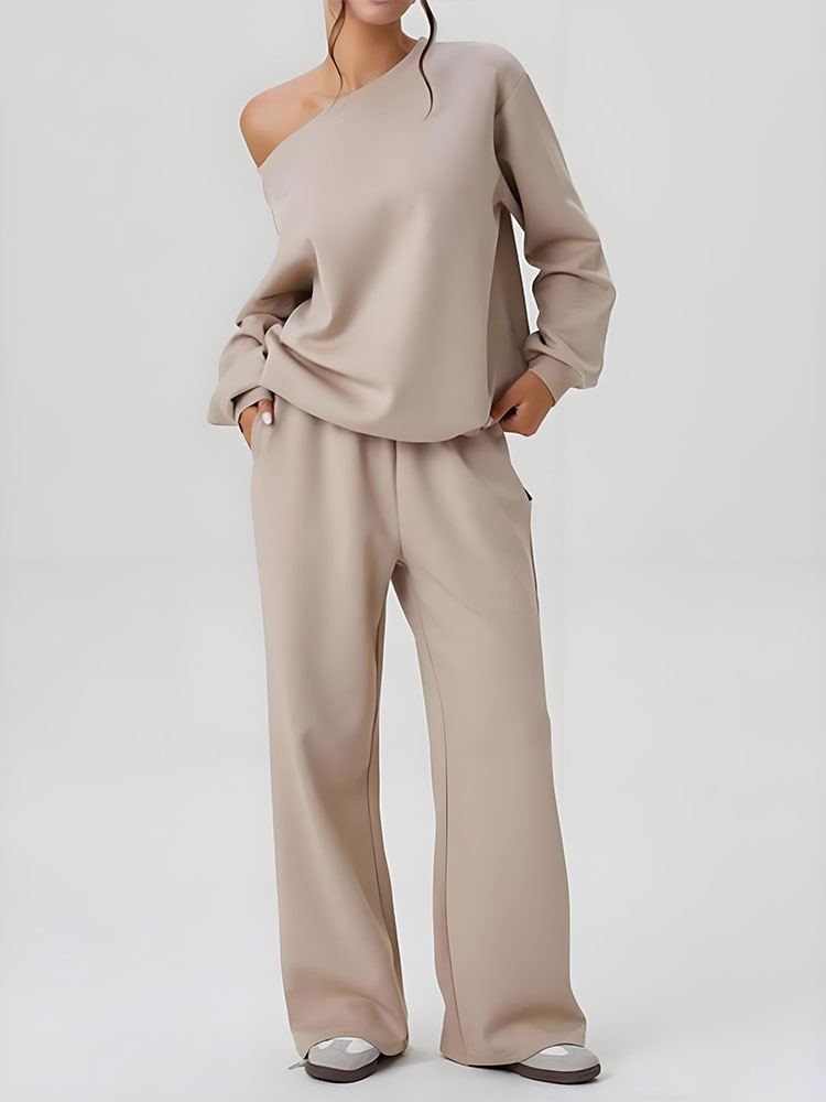A new Amazon sporty and casual two-piece set with a slanted shoulder design for autumn and winter