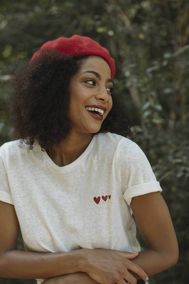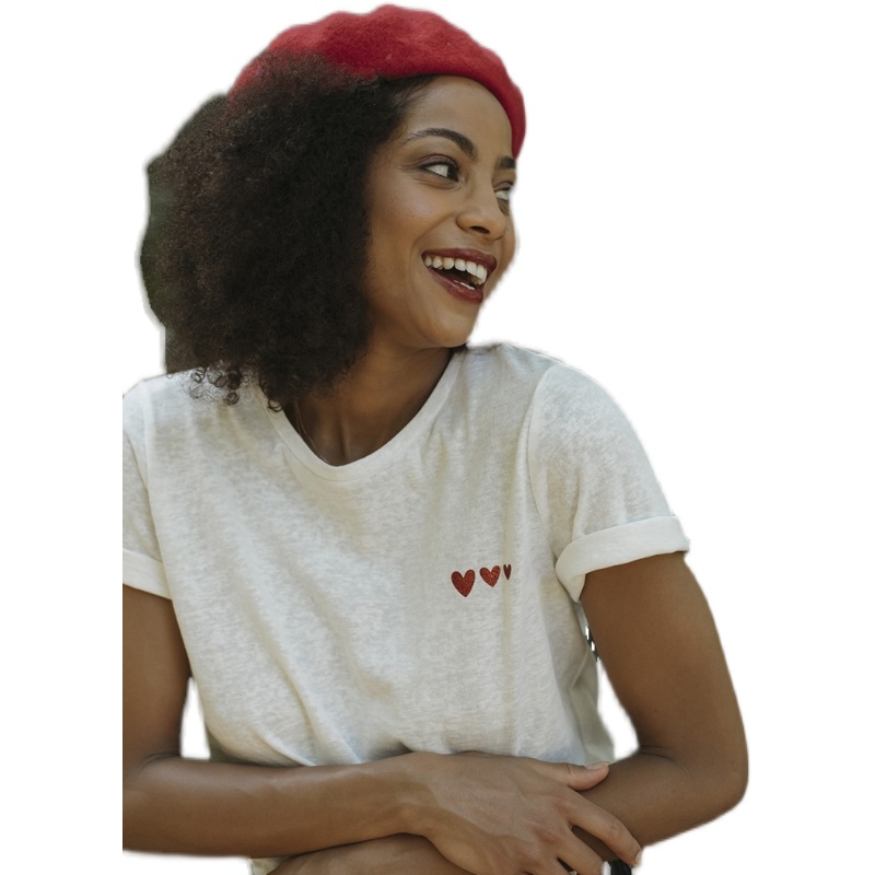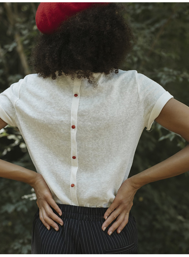 Rr&Ii French French Fresh Round Neck Heart Back Single Breasted Export Original White T-Shirt Women's Top